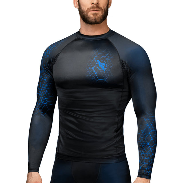 Hayabusa Geo Long Sleeve Rashguard - Zwart, Blauw
