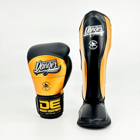 Danger Reborn Scheenbeschermers - Echt Leer - Zwart/Goud