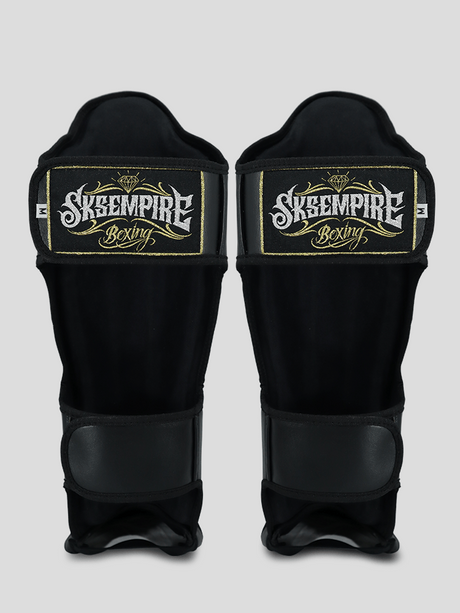 Danger Reborn Scheenbeschermers - Echt Leer - Zwart/Goud