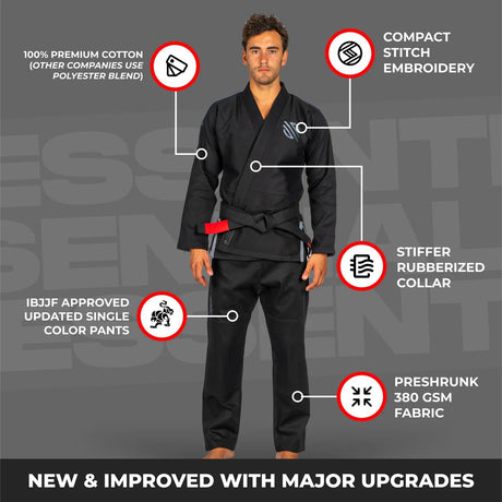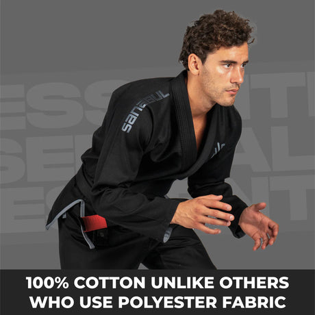 Sanabul Essential Lightweight Brazilian Jiu Jitsu Gi - Pre-Shrunk Cotton - IBJJF Approved - Black