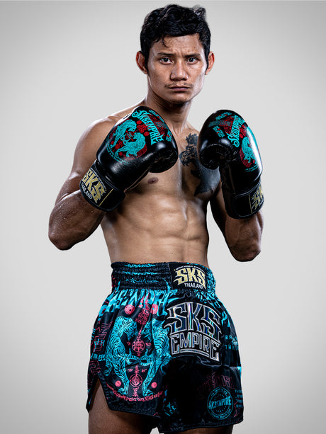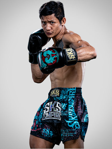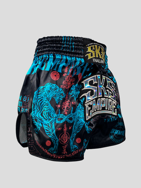 SKS Muay Thai Shorts Sakyant “Stickerbomb” - Black / Blue