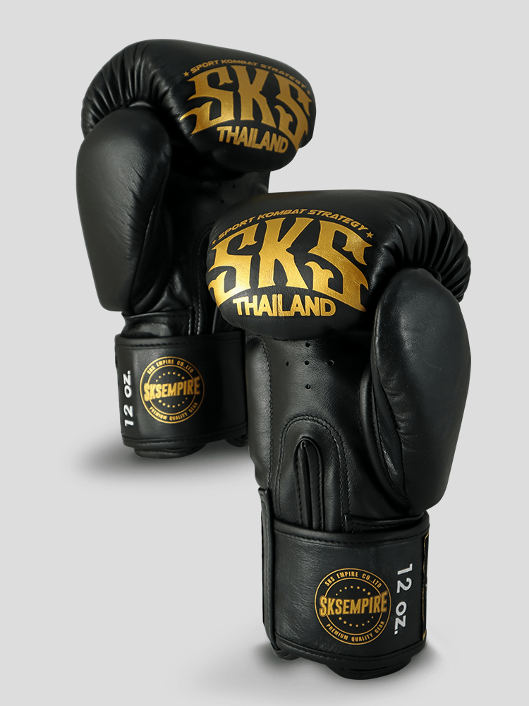 SKS Empire Boxing Gloves - Sak Yant - Genuine Leather - Black / Gold